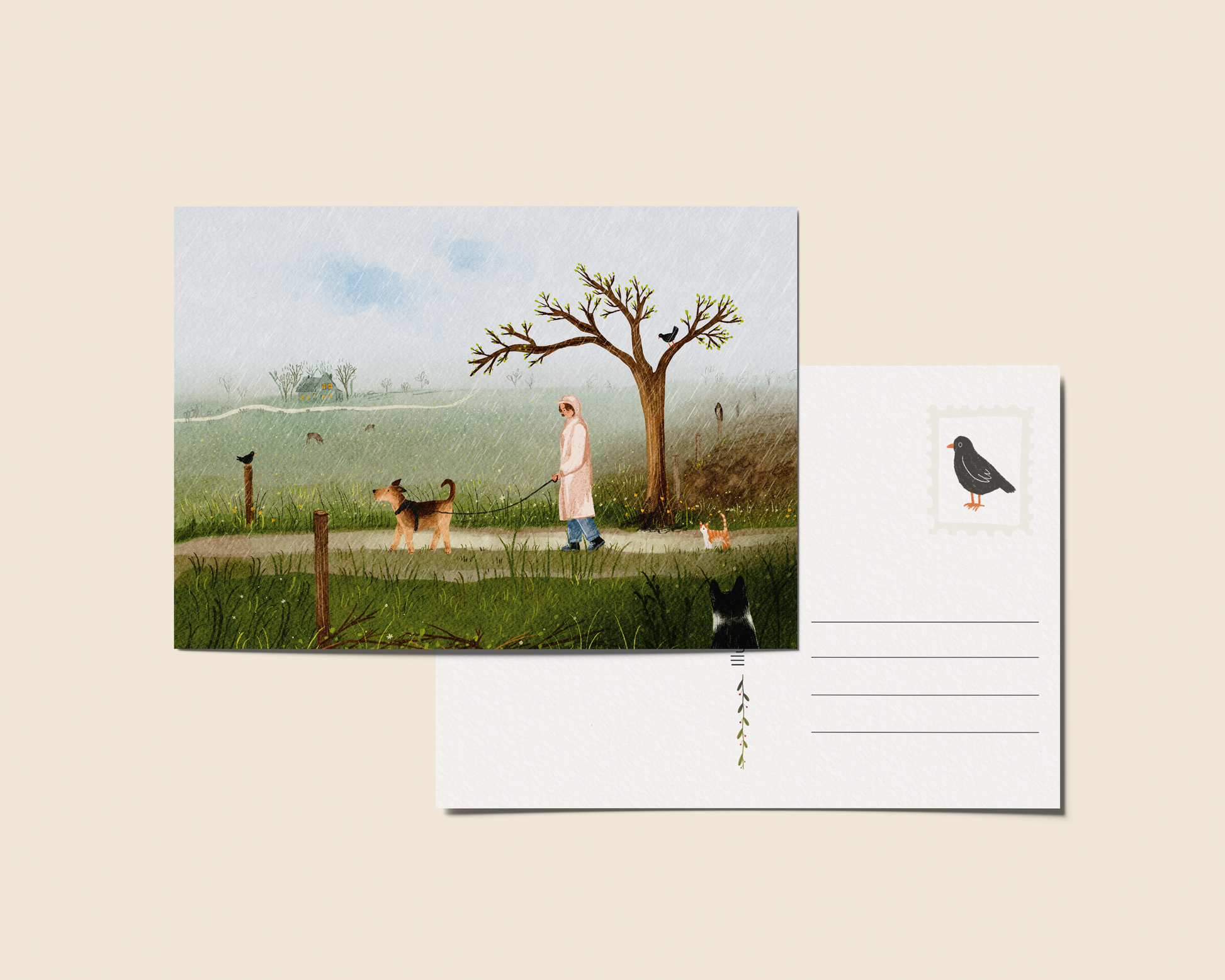 Een echte Rainy Walk! Bestaat hondenweer, of is onze mindset gewoon slecht? PS: van deze ansichtkaart is ook een A4 poster te verkrijgen, je vindt hem tussen de posters in mijn webwinkel.