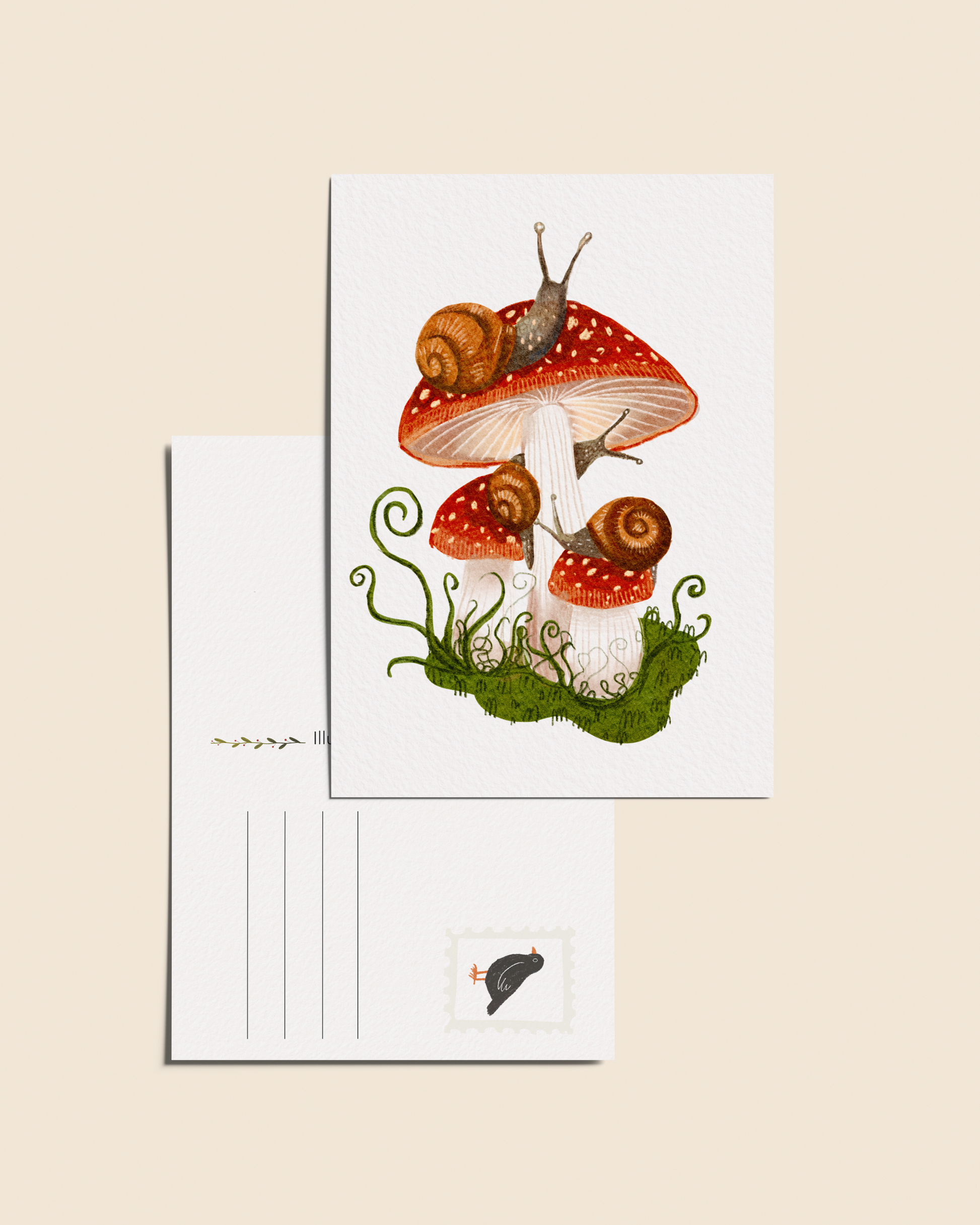 Ansichtkaart 'Vliegenzwam en slakken', A6