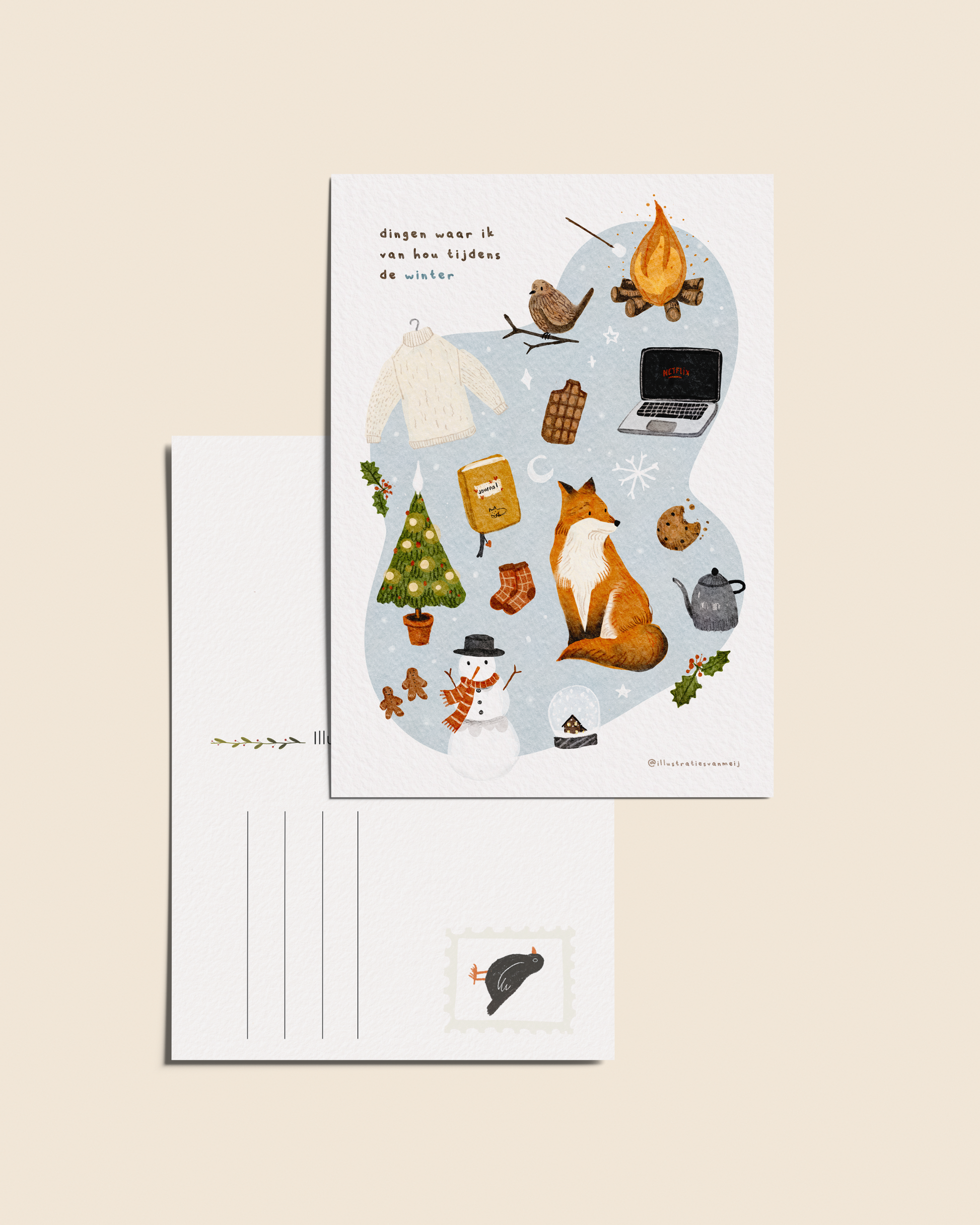Wie vindt het nou niet leuk om een kaartje op de deurmat te krijgen? Deze ansichtkaart kun je geven of natuurlijk cadeau doen aan jezelf. Je kunt hem ook inlijsten (tip: doe er een passepartout eromheen + grotere lijst!) en als artprint gebruiken!